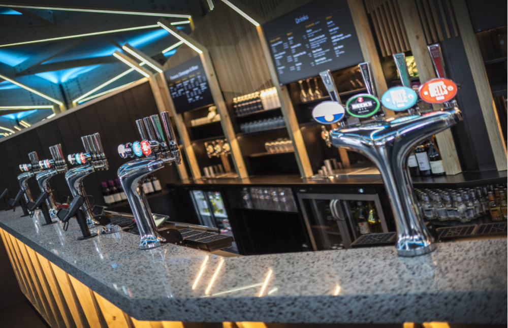 When it comes to foodservice and hospitality equipment, the practical properties of the material used are no less important than its aesthetic aspects. Sean, the bar's designer, chose to use TechniStone® engineered stone because it excels in its durability, strength, and ease of maintenance. In addition, he was taken by the interesting visual effect created by the contrast of Taurus Terazzo White decor's white base and the black particles in the stone.