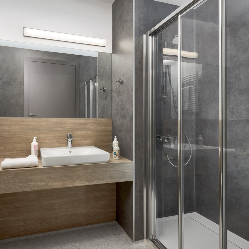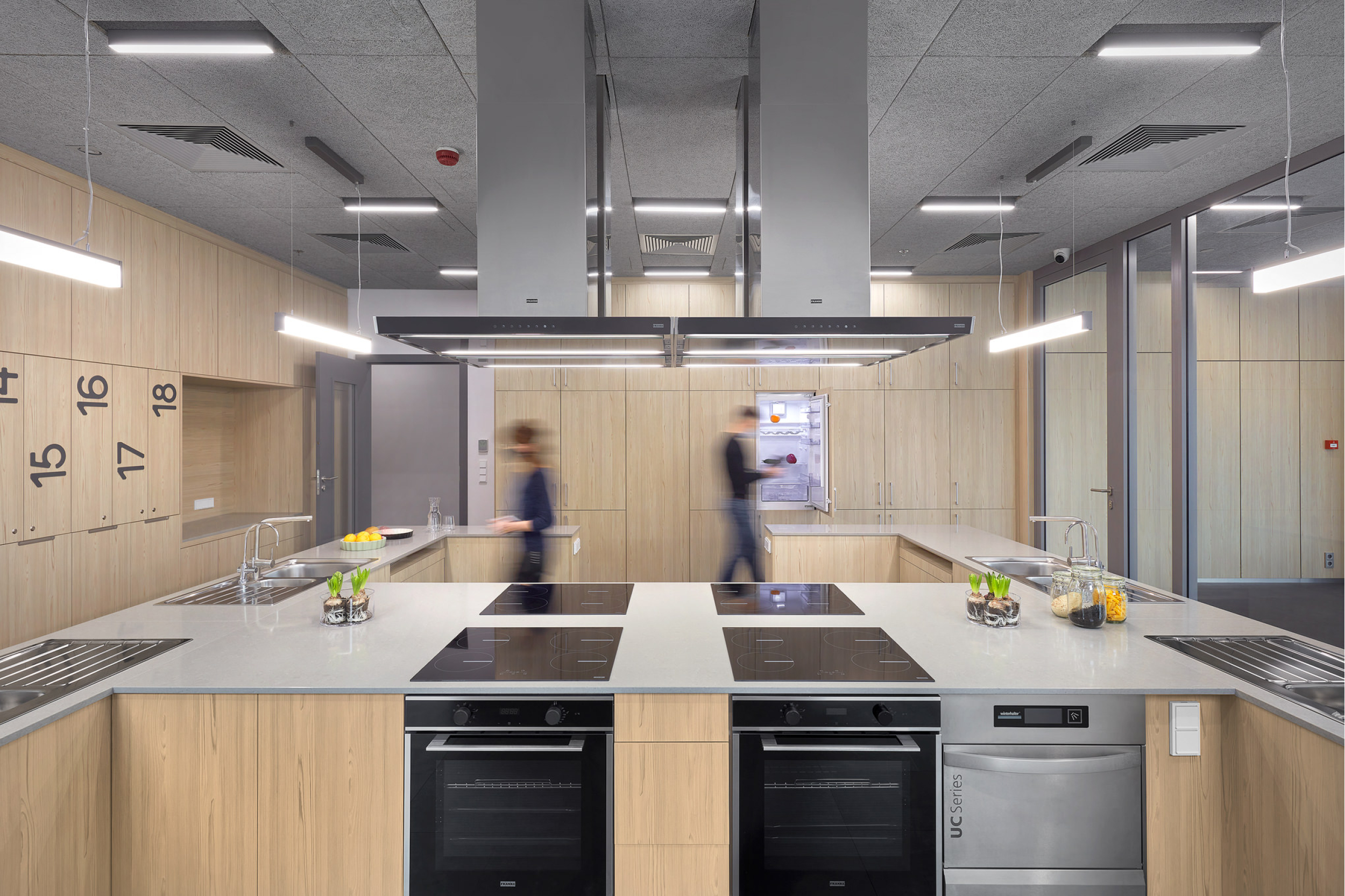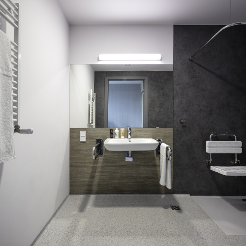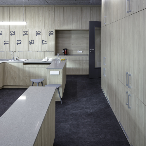 The architects chose TechniStone® not only for its visual appeal, but also because of its exceptional durability and resistance to mechanical damage — something that is essential in a space meant for long-term stays by different families. The material resists staining and scratches, which ensures its continued attractiveness even after intensive use.