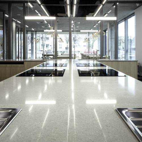 Technistone’s branch in Poland became involved in the project as it was being designed and its Noble Concrete Grey was chosen in close consultation with AFP Architekci. The objective was to find a solution that would be timeless, functional, and pleasing to the eye. Final installation was performed by the professional stonemasons at Kamieniarstwo-ABC, who used their experience with fabricating Technistone slabs to ensure precision installation in accord with the demanding standards of the project.